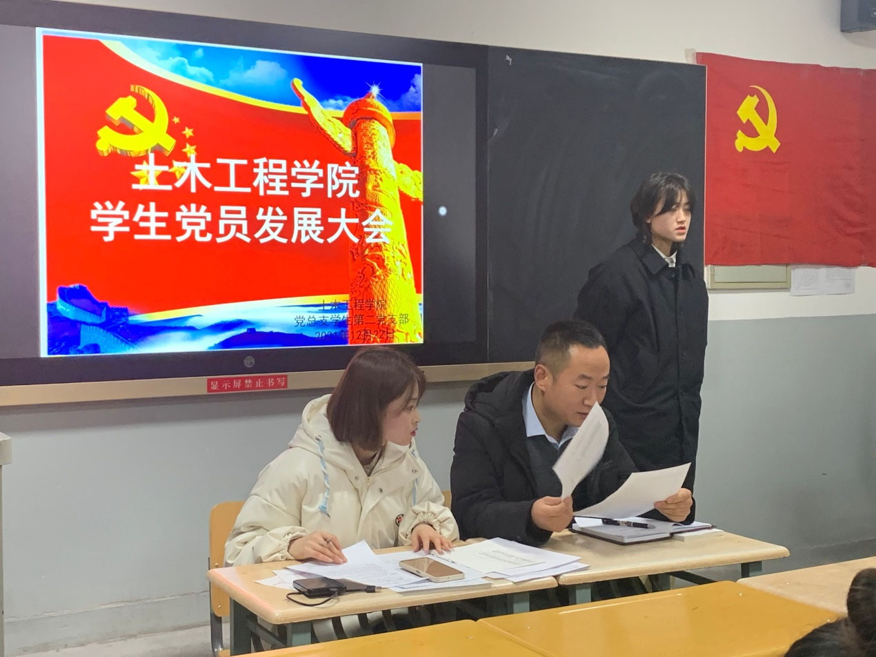 根据土木工程学院党总支党员发展工作计划和安排,学生党支部于12月22日晚上在2号教学楼310教室召开2021年下半年党员发展大会,土木工程学院学生第一党支部书记成志军及全体学生党员参加了会议,会议主要讨论了49名发展对象的发展问题。会议由学生党支部副书记主持。