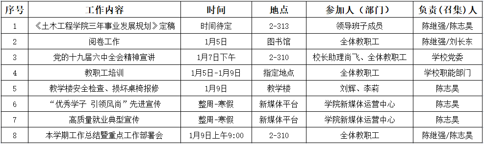 土木工程学院2021-2022学年第1学期第18周工作安排