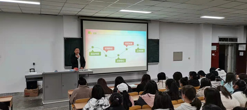 会上,辅导员老师们借助PPT等教学媒体,分别从开学收心、当前疫情形势分析、疫情防控要求、校纪校规、公寓安全卫生等方面认真细致开展讲解和教育工作。