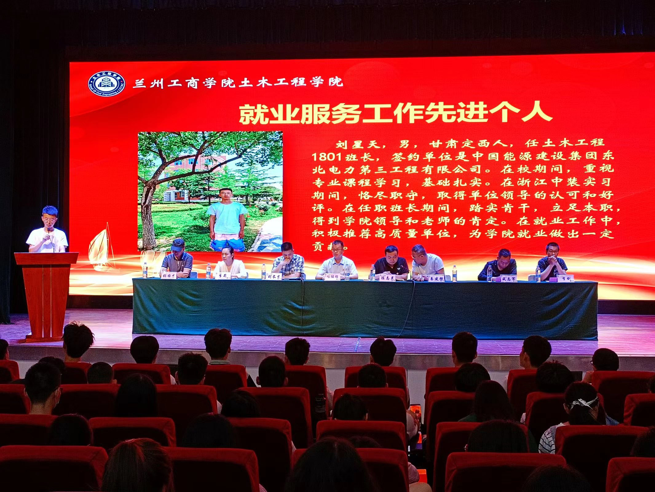 会上,三名优秀毕业生代表做主旨发言,他们代表全体毕业生向辛勤培养自己的母校和学院领导老师表示衷心的感谢,其中方叶波同学结合考研备考过程、张澜和刘星天两名同学结合求职就业过程,向在场同学做考研和就业经验分享,他们鼓励学弟学妹们要做好大学人生规划,脚踏实地,延续和传承好“自强不息,艰苦奋斗,持之以恒,永不言弃”的土木精神。签约中国能源建设集团东北电力第三工程有限公司的刘星天同学代表2022届全体同学,向大家保证,在到达工作岗位以后,一定恪尽职守,努力成长,将土木精神继续发扬光大,争取为学弟学妹们创造更多的高质量就业机会。