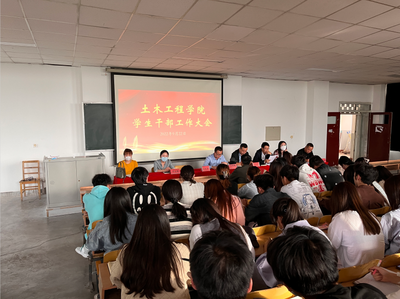为进一步加强学生干部队伍建设,充分发挥学生干部在班风学风建设和学生事务管理中的重要作用,提升学院学生管理水平,9月22日下午4:30,土木工程学院在2号教学楼315教室召开全体学生干部工作大会。土木工程学院院长陈继强、党总支书记陈志昊、院长助理刘长东、院长助理李剑、团总支书记成志军、教学秘书宋佳璇、党政秘书魏婕、2022级新生班辅导员以及党团主要学生干部、新生班学生辅导员、各班班委共100余人参加了本次会议。大会由院长助理李剑主持。