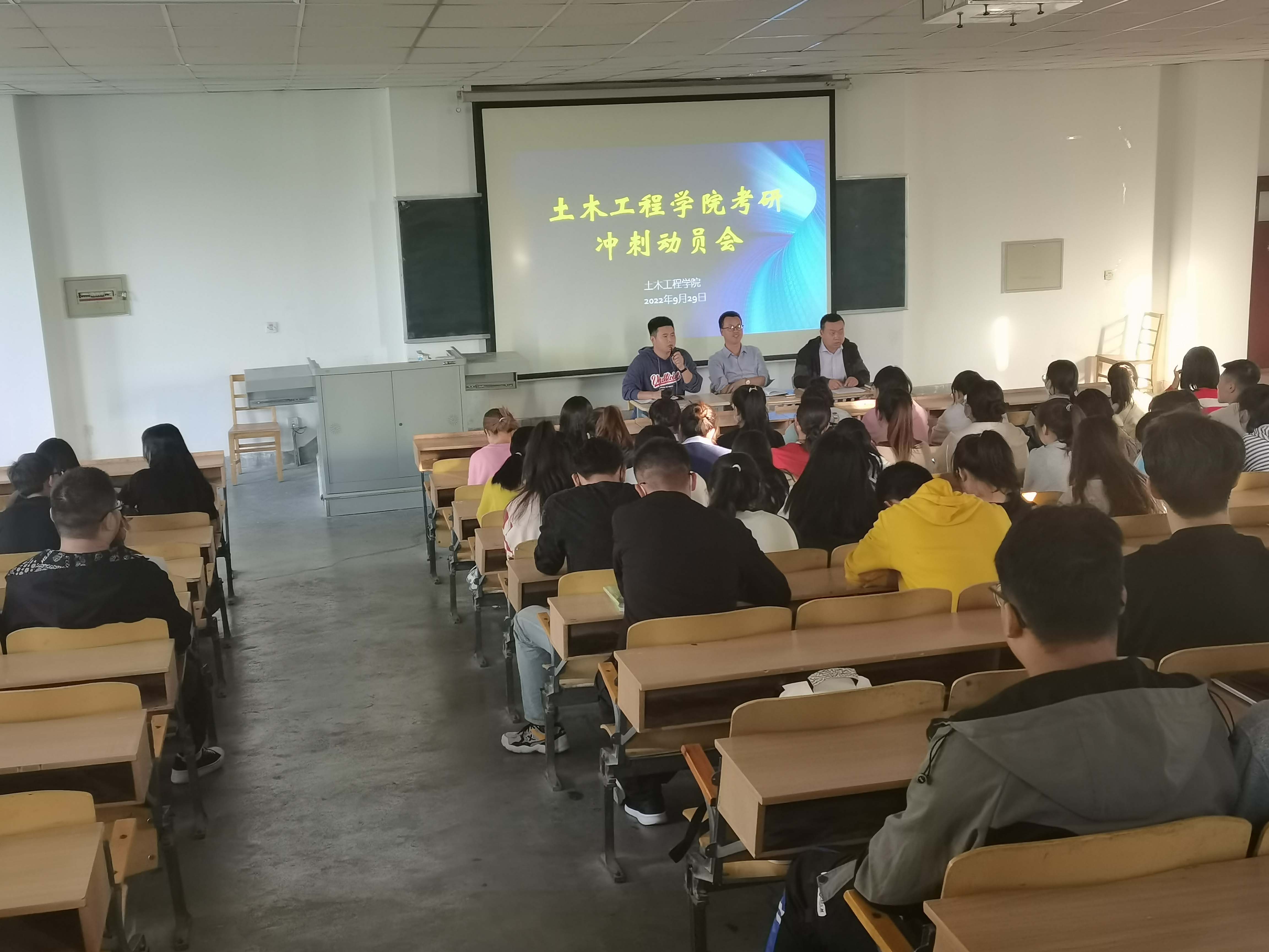 2023年考研已进入冲刺阶段,为鼓舞考研士气、再创考研佳绩,9月29日下午,土木工程学院在2号教学楼315教室召开考研冲刺动员大会。学院院长陈继强、党总支书记陈志昊、院长助理刘长东及学院全体考研学生参加本次会议,会议由院长助理刘长东主持。