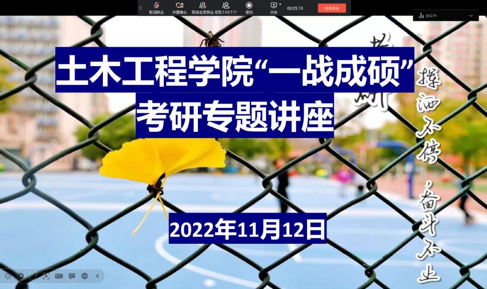 为帮助考研学子坚定考研信心,实现科学备考,11月12日下午15:20,土木工程学院通过线上举办“一战成硕”考研专题讲座,学院领导班子、考研指导老师代表、往届考研优秀学子代表及全体2023届考研学生参加讲座,讲座由学院党总支书记陈志昊主持。