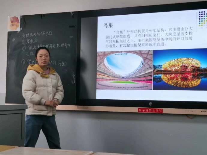 本次教学活动赵根兄老师对建筑力学A2课程中的静定平面桁架内容进行教学展示。赵老师以重点内容梳理、板书总结形式对多跨静定梁的组成特点、受力特点、计算方法等内容进行课前回顾。以鸟巢、中山桥等桁架工程实例引入本节授课主题——桁架结构,通过介绍桁架的组成特点、受力特点及其组成杆件进行内力计算的重要性,从实际的工程模型到力学简图的简化,使学生明白力学课程并不只是有抽象的理论知识,更具有极强的工程实用性,从而使学生在思想上重视本课程,在学习上变“被”为“主”,激发学生的学习积极性。并以例题形式加强应用,在例题讲解中进一步强调桁架的受力特点、内力的正负方向、计算结果的判断等,在实操中巩固理论知识掌握。