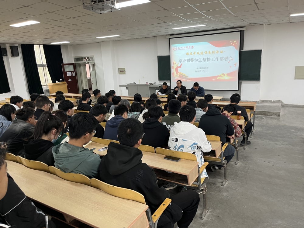 为进一步加强基层党组织建设,发挥党建思想引领作用和党员在学生群体中的先锋模范带头作用,充分利用学生之间的朋辈互助关系,有效帮助学业落后、遵纪困难的学生实现较大改变,高质量完成大学学业,以优良党风带动学院班风学风建设整体向好,根据学校“三抓三促”行动实施方案和“三热爱”教育实施方案具体要求,4月21日下午,土木工程学院在2号楼315教室召开学业预警学生帮扶工作部署会,学院党委书记陈志昊、团总支书记成志军、2022级专升本辅导员周小刚及本学期给予学业预警和承担帮扶任务的全体学生参加大会。