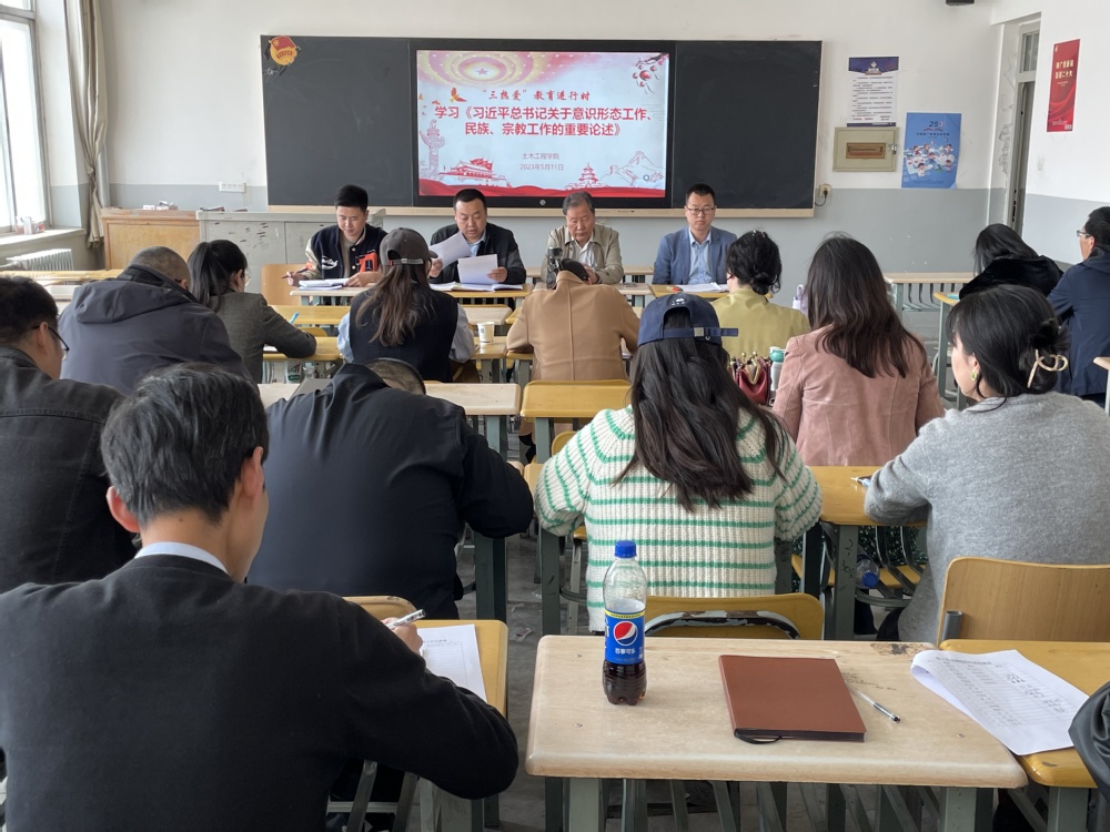 为深入开展“三抓三促”行动,不断提升教职工“三热爱”水平,学深悟透习近平总书记关于加强和改进民族工作的重要思想,根据学习安排,5月11日下午14:00,土木工程学院组织全体教职工在善问楼310教室集中学习《习近平总书记关于意识形态工作、民族、宗教工作的重要论述》,学院领导班子及全体教工参加,学院党委书记陈志昊领学。