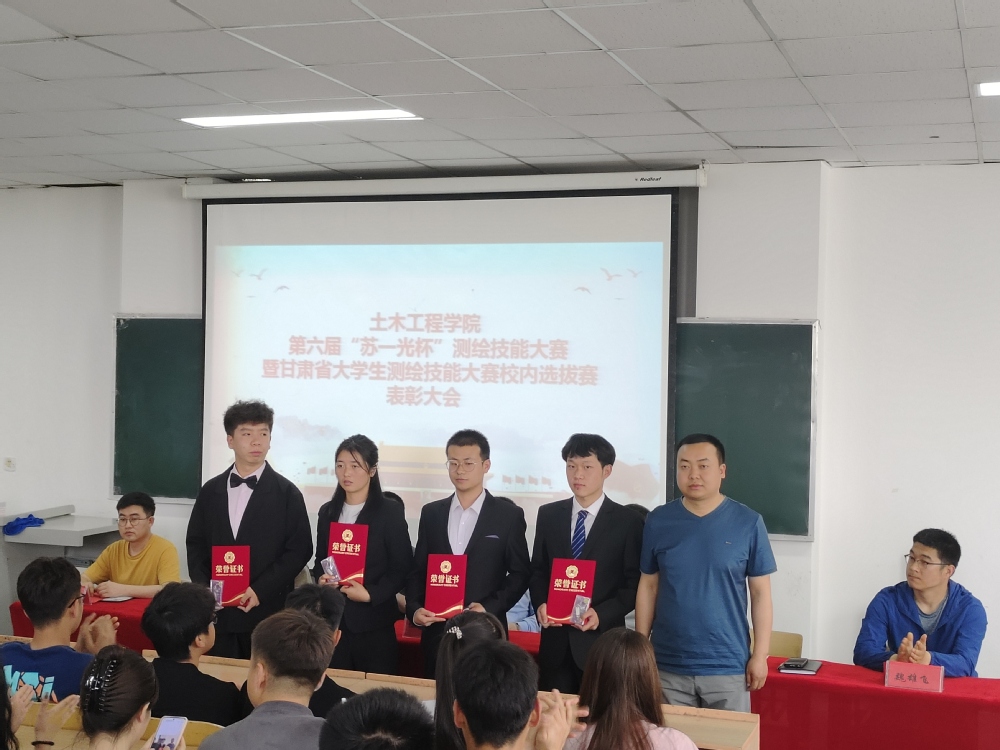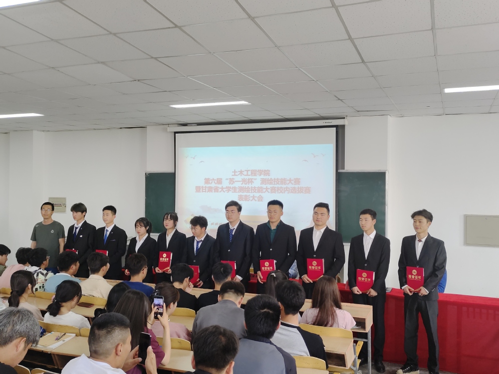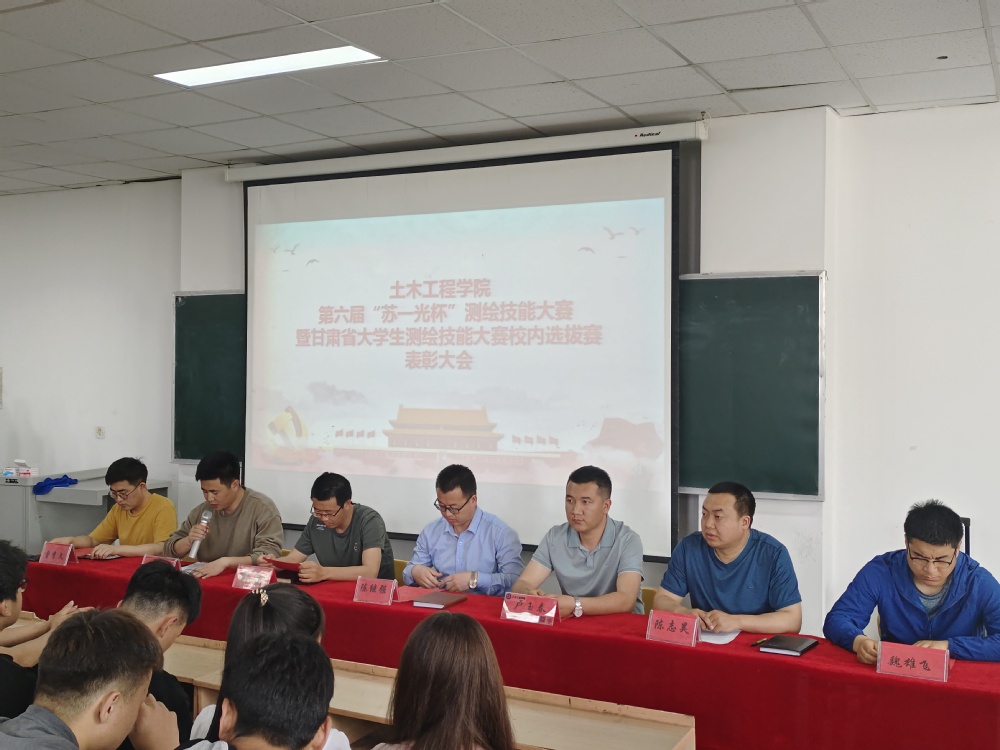 为强化应用型人才培养质量和实践教学效果,提高学生的专业能力和就业竞争力,近日,由大学生创新实践中心主办,土木工程学院承办的兰州工商学院第六届“苏一光杯”测绘技能大赛暨甘肃省大学生测绘技能大赛顺利完成各项赛事,成功落下帷幕。516日下午,土木工程学院在善问楼315教室隆重举办闭幕暨表彰仪式,对获奖的优秀指导教师和学生团队进行表彰奖励。学院领导班子及企业嘉宾出席表彰大会并讲话,全体参赛队伍及各年级学生代表一百余人参加大赛闭幕式,闭幕式由学院院长助理刘长东老师主持。