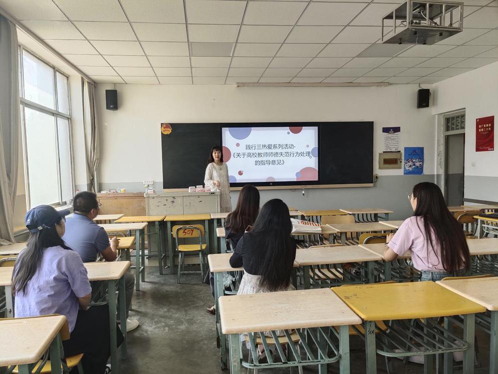 最后,教研室主任郭敏老师做总结讲话,她指出:师德师风建设是教育工作的重中之重。教师的一言一行、一举一动无不时刻影响着学生,全体教师要坚持以德立身、以德立学、以德施教、以德育德,将学校各项工作要求落实到实际工作中去。