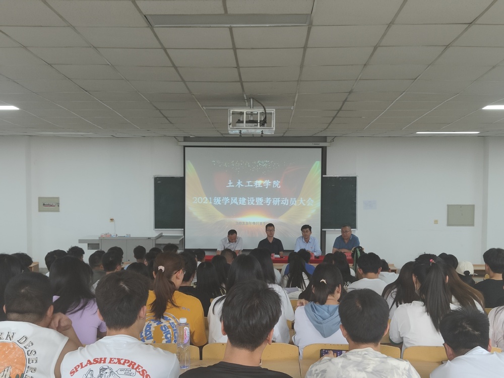 为进一步推动我院学风建设,激励学生继续深造,营造浓厚的考研学习氛围,9月15日下午,土木工程学院在善问楼215教室召开了2021级学生学风建设暨考研动员会,学院领导班子、2021级辅导员张国龙及200余名学生参加了会议。会议由学院党委书记、行政院长彭勇主持。