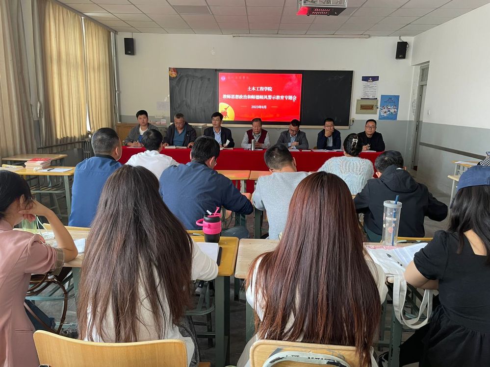为贯彻落实习近平新时代中国特色社会主义思想,进一步加强学院师德师风建设,近日,土木工程学院在善问楼310教室召开教师思想政治和师德师风警示教育专题会议,会议由学院党委书记彭勇主持,全体教师参加了会议。