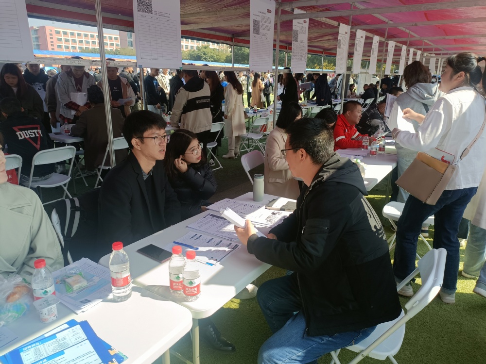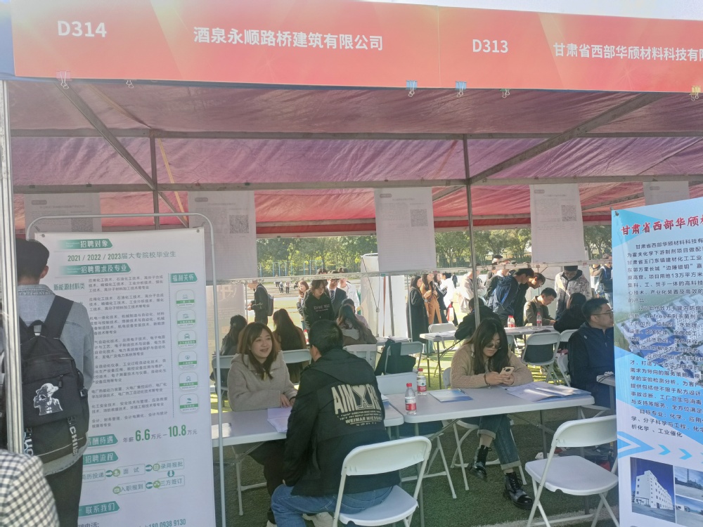 在招聘会现场,李助理详细了解土建类单位近两年的用人需求情况,并与中建新疆安装、酒泉永顺路桥等单位进行洽谈,初步达成合作意向,以备后期邀请来校做专场招聘。