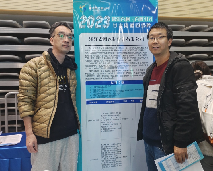 在招聘会现场,学生积极投递简历,李助理详细了解相关单位的用人需求,并与浙江宏图水利设计有限公司等单位进行洽谈,初步达成合作意向,为后续招聘工作打下坚实的基础。