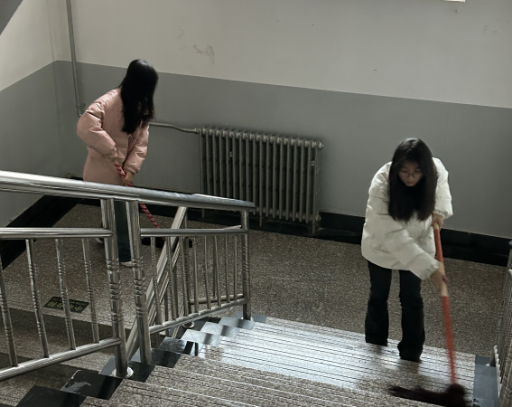 活动过程中,党员、积极分子志愿者们充分发扬不怕脏、不怕累的优良作风和团结协作的良好风貌,各司其职,拿起笤帚、拖把、垃圾桶、毛巾等清扫工具有序行动起来,全身心投入到自己负责的区域中,对区域内卫生进行了彻底清扫。虽然天气寒冷,但志愿者们脸上都洋溢着笑容,深刻体会着奉献精神所带来的成就感。经过党员志愿者们的辛勤劳动,清扫过后的楼道、教室及实验室焕然一新,再次展现出盎然生机。