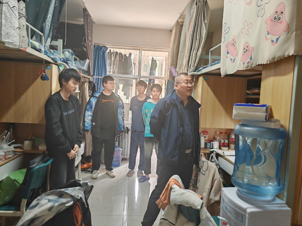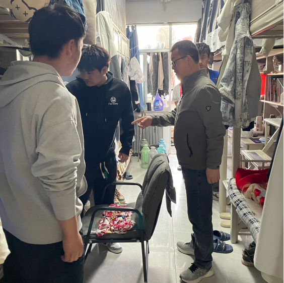 此次检查以学生公寓安全隐患排查、宿舍卫生、学生学习生活情况为重点,对照学校检查反馈的情况,逐个宿舍走访落实安全、纪律、卫生责任。重点排查了宿舍消防安全隐患,从学生宿舍规范用电、全面禁烟多个方面进行了教育和反复强调;核实排查了学生晚归和夜不归宿情况,通过宣传校纪校规对学生进行反复安全教育;督查了宿舍卫生状况,叮嘱同学们要养成良好的个人卫生习惯和健康的生活方式,规范个人言行举止,构建和谐友爱的宿舍环境氛围;同时,从防电信诈骗人身财产、交通和卫生健康安全等方面进行了教育引导,不断筑牢学生安全防范意识。