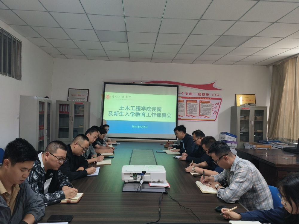 新学期,新梦想;新征程,新希望。为确保新学期各项工作有序开展,精细化做好迎新及新生入学教育工作,土木工程学院于9月4日上午在善问楼110会议室召开了迎新及新生入学教育工作部署会。学院领导班子成员、全体辅导员、参与新生入学教育的专任教师参加会议。会议由党委书记、行政院长彭勇主持。
