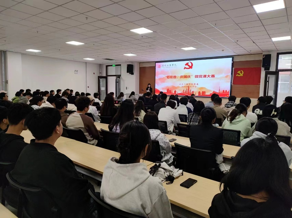 为庆祝中华人民共和国成立75周年,深入学习贯彻习近平新时代中国特色社会主义思想和党的二十届三中全会精神,进一步弘扬爱国主义精神,激发爱党爱国热情,提高学生党员思想政治素养,929日下午,土木工程学院在综合教学楼C501举办“忆往昔、庆国庆”微党课大赛。学院党委书记彭勇、行政院长助理李剑、各党支部书记、党员及入党积极分子代表共计150余人参加了本次活动。