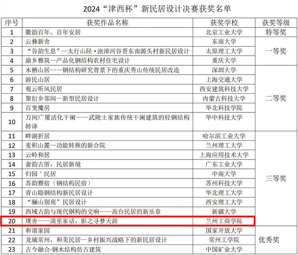 此次竞赛吸引了哈尔滨工业大学、东南大学、上海交通大学等众多高校的积极参与,竞争异常激烈。兰州工商学院土木工程学院的学子凭借扎实的专业知识、创新的设计理念和出色的团队协作精神,在比赛中脱颖而出。他们的作品在新民居设计方面展现出了独特的创意和实用性,得到了评委们的高度认可。