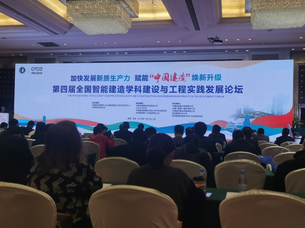 近日,由住建部新型建筑工业化集成建造工程技术研究中心、中国建设教育协会主办,中建丝路建设投资有限公司、北方工业大学等多家单位承办的第四届全国智能建造学科建设与工程实践发展论坛在西安举行。本次会议围绕“加快发展新质生产力,赋能‘中国建造’焕新升级,助力韧性安全城市建设”为主题,旨在促进科技成果产出转化与人才培养建设,为科学研究、工程实践与人才培养相关工作领域的专家学者及行业从业者搭建交流平台,促进智能建造与韧性城市建设创新发展。来自全国各地高校、科研院所、建筑业企业的专家、学者及代表400余人参加。