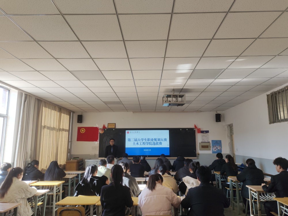 为严格贯彻落实教育部《关于举办第二届大学生职业规划大赛的通知》文件精神,加强大学生生涯教育和就业指导,引导大学生养成良好的职业规划意识,指导其尽早做好就业准备,以择业新观念高质量充分就业,1128日下午,土木工程学院在善问楼三楼举行第二届大学生职业规划大赛院级选拔赛,来自学院不同年级的40余名学生参赛,评委由学院就业指导经验丰富的教师担任。