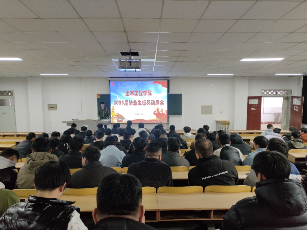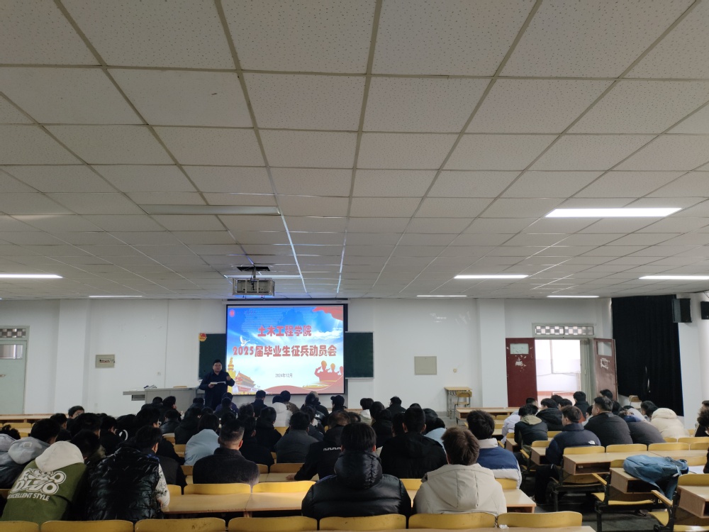 为全面做好2025届毕业生征兵动员工作,帮助学生了解入伍优惠政策,激发毕业生应征入伍的热情,12月12日下午,土木工程学院在善问楼315教室召开2025届毕业生征兵动员会。动员会邀请到学校保卫处何健德处长作了主题宣讲。