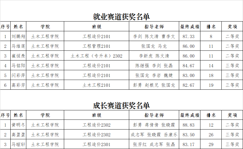 第二届全国大学生职业规划大赛校级决赛土木工程学院学生获奖名单(公示)