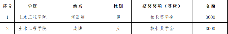土木工程学院2023-2024学年校长奖学金拟获奖学生(公示)