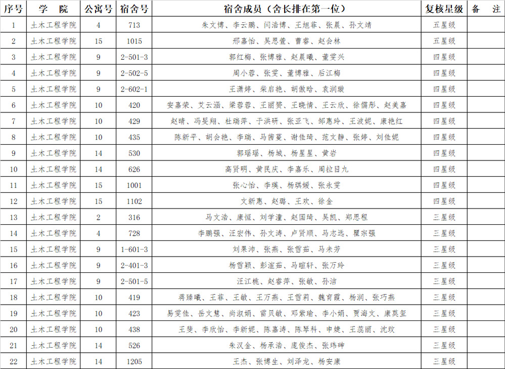 土木工程学院2024年度校级文明宿舍评选汇总(公示)