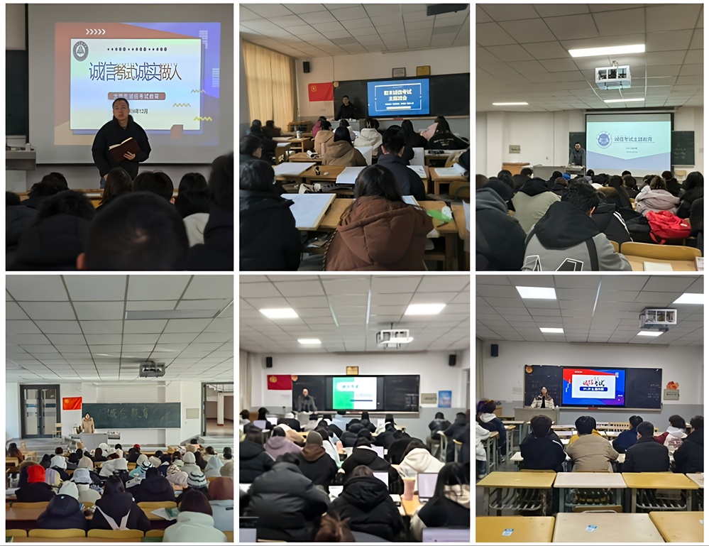 班会上,各年级辅导员详细解读了《兰州工商学院学生考试违规违纪认定办法》、《兰州工商学院考场纪律》、《兰州工商学院学生考试作弊处理程序》等文件,强调了期末考试中应注意的事项。并结合以往学生作弊的真实案例,教育学生深刻认识到诚信考试的重要性、作弊后果的严重性,引导学生养成良好的考试习惯,拒绝任何形式的作弊行为。同时,提醒并引导学生充分利用考前时间查漏补缺、梳理知识脉络,以最佳状态全身心地投入到考试复习中去。