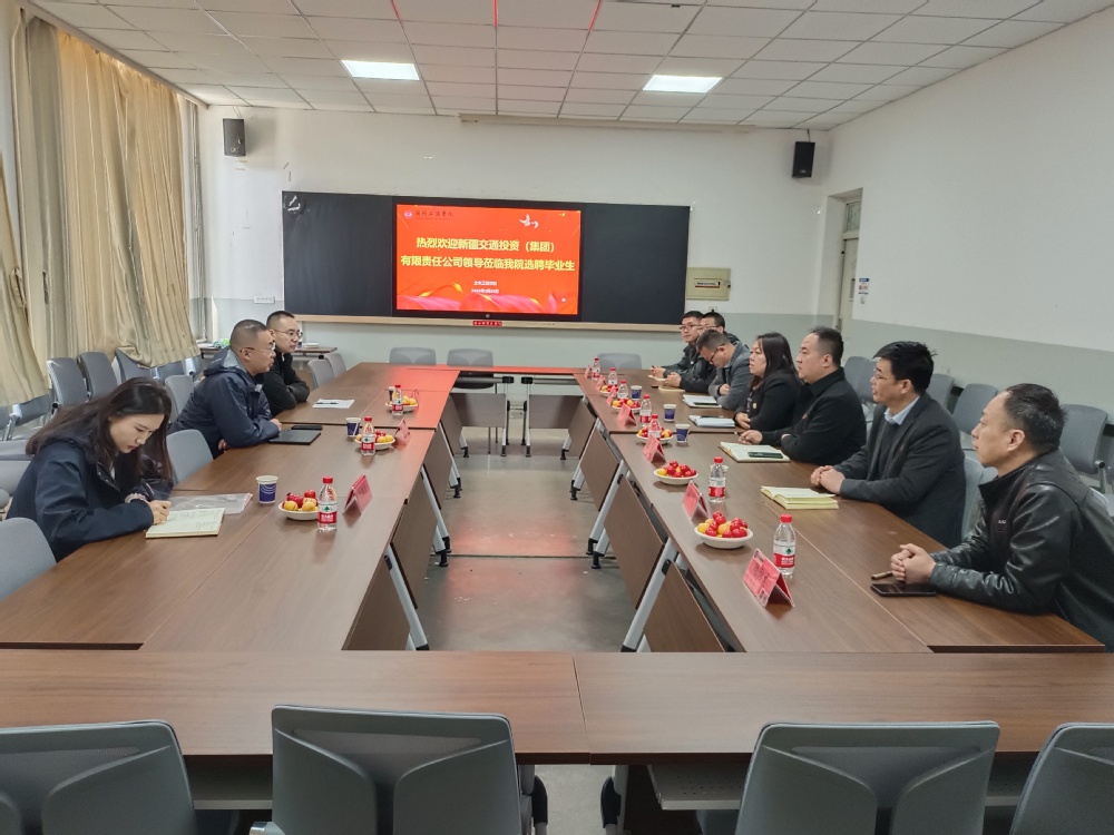 为加强校企合作育人机制,共同探索互利共赢的发展路径,为毕业生高质量就业提供有力支持,3月20日上午,土木工程学院在善问楼108会议室举行了校企合作交流座谈会,新疆交通投资(集团)有限责任公司及11家全资子公司代表一行受邀参加。学校助理校长周海燕、就业指导中心主任秦勇、学院相关领导及毕业班辅导员参加了此次会议,座谈会由学院党委书记、行政院长彭勇主持。