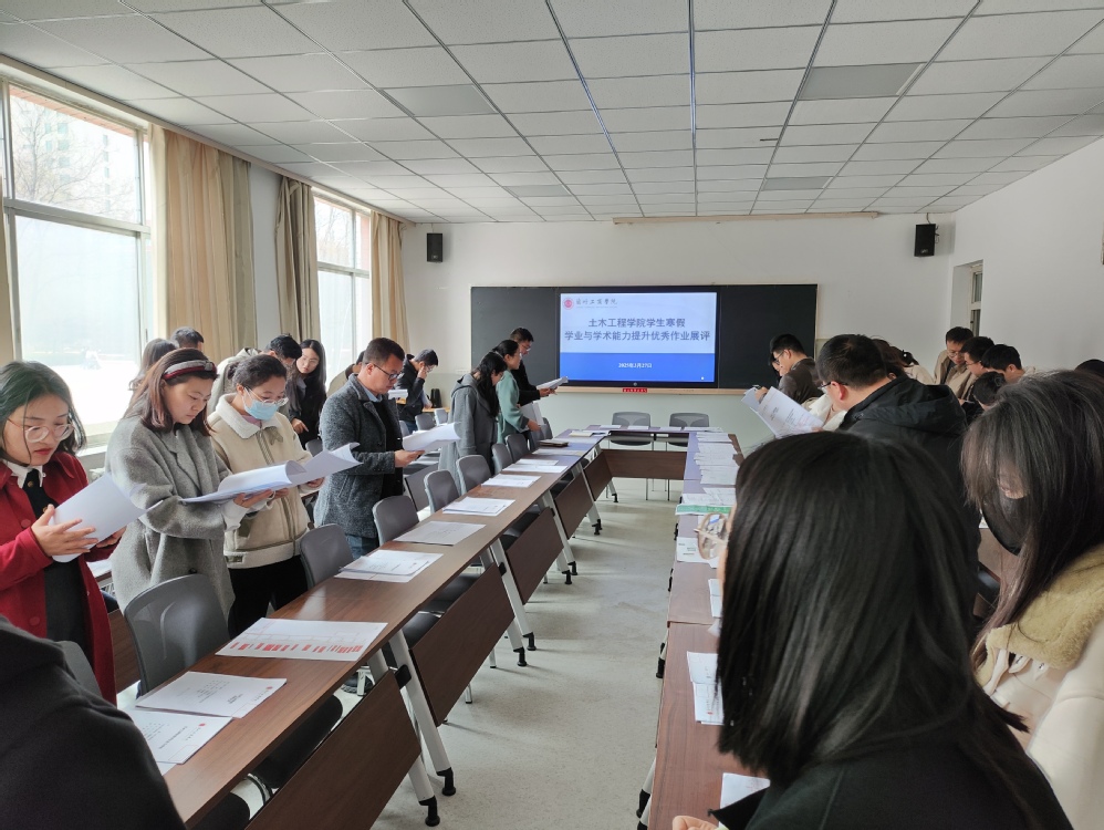 为进一步加强学风建设,促进学生学业与学术能力提升,根据学校《关于做好2025年寒假期间学生学业与学术能力提升工作的通知》要求,土木工程学院认真组织,扎实开展了学生寒假学业与学术能力提升工作,并于3月27日在2号教学楼106会议室集中展评了寒假期间学生阶段性成果,全院师生代表200 余人参与。
