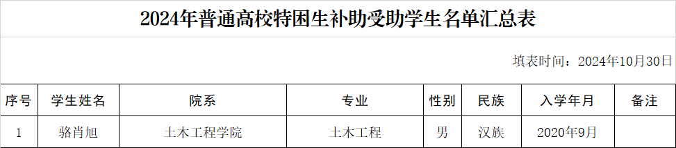 土木工程学院2024-2025学年特困生评选公示名单