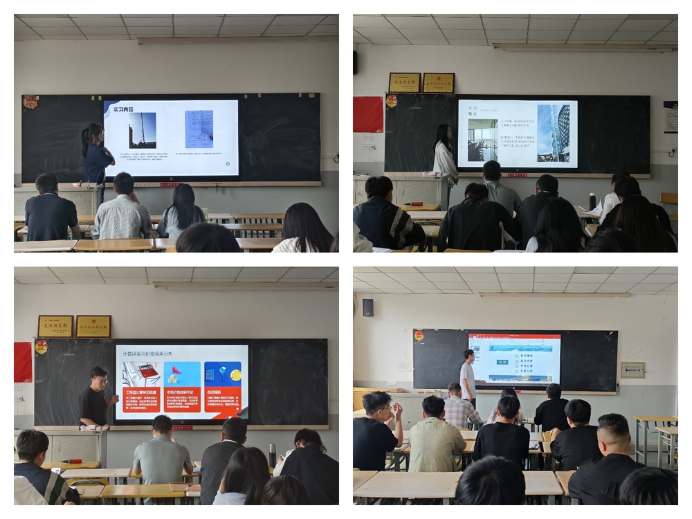 在答辩过程中,学生结合自己实习经历,围绕岗位工作内容、技术实践操作与专业问题解决、理论知识应用及工程实践经验凝练等方面展开汇报,阐述了自己在建筑施工、工程资料整理、造价咨询及工程监理等不同岗位上的实践收获。各组评委结合学生实习材料及汇报,针对具体项目技术要点、职业能力培养等方面给予合理建议与指导,引导学生进一步梳理实习内容,深化对专业知识的理解与应用。