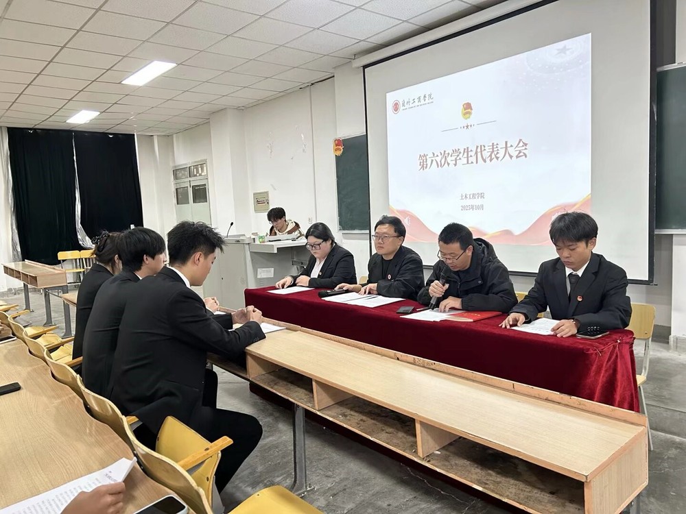 为深入学习贯彻习近平新时代中国特色社会主义思想和党的二十大及二十届二中、三中全会精神,引领广大青年学生在新时代中国特色社会主义建设中挺膺担当、勇毅前行。10月17日下午,土木工程学院第六次学生代表会议在善问楼315顺利召开。学院党委副书记李剑、学院全体学生代表、团学干部及校学生会代表共同参加了此次会议,会议由学院团总支书记王宇坤老师主持。