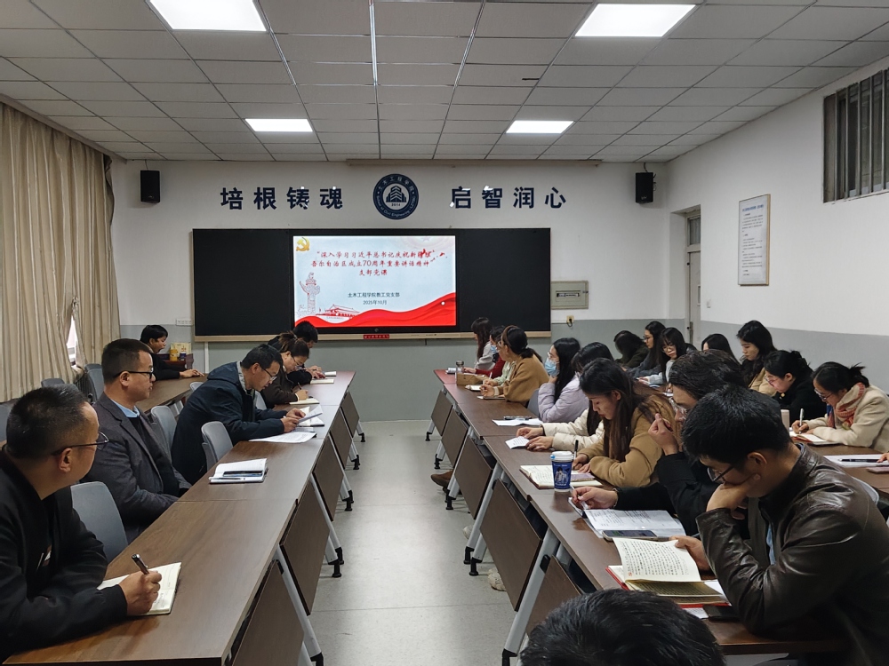 为深入学习贯彻习近平新时代中国特色社会主义思想和党二十大及二十届二中、三中全会精神,切实提升教职工的政治素养和理论水平,不断培养求真务实的工作作风和营造良好的育人环境,10月23日,土木工程学院教工党支部在善问楼106会议室组织开展10月份理论集体学习会议。全体教工党员参加了此次会议,会议由学院党委副书记李剑主持。