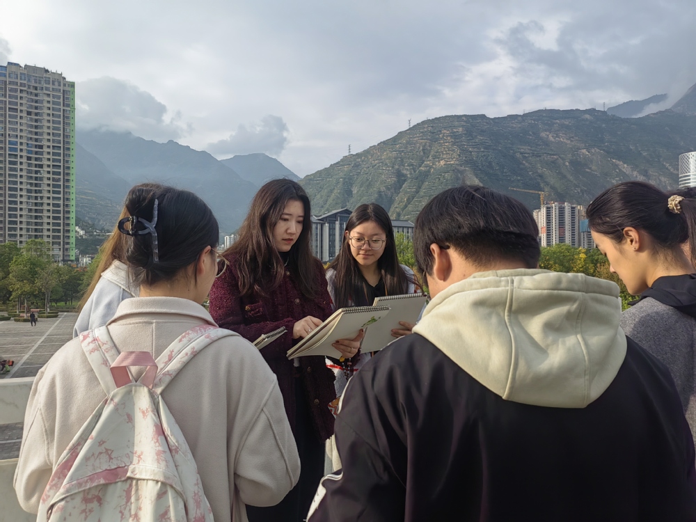 为强化学生手绘表达能力,推动设计思维与艺术感知的深度融合, 11月1日至2日,土木工程学院风景园林专业师生一行68人,在郭敏、赵强、陈岩、何颖茹四位教师的带领下,赴甘肃省陇南市开展了为期两天的“景观手绘现场训练”专题实践教学。本次活动以“实景写生与表现技法”为主线,通过集中讲授、现场示范、分组写生与作品点评等形式,系统提升了学生在真实场景中的手绘表达能力。
