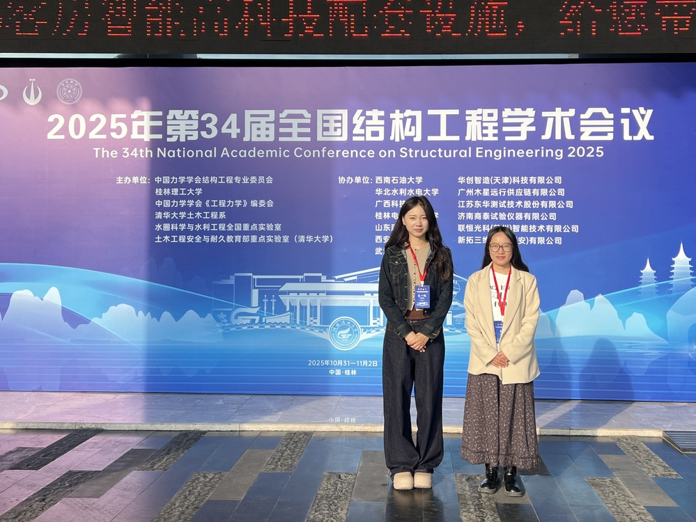 2025年第34届全国结构工程学术会议近期在广西桂林隆重召开,作为结构工程领域的年度学术盛会,本次会议汇聚了全国高校、科研院所及企业的众多专家学者,围绕结构工程前沿技术、理论创新与工程应用展开深入交流。我院教师王天,朱一帆积极参会,在交流中学习先进经验,也为我院在结构工程领域的研究积累了有益参考。