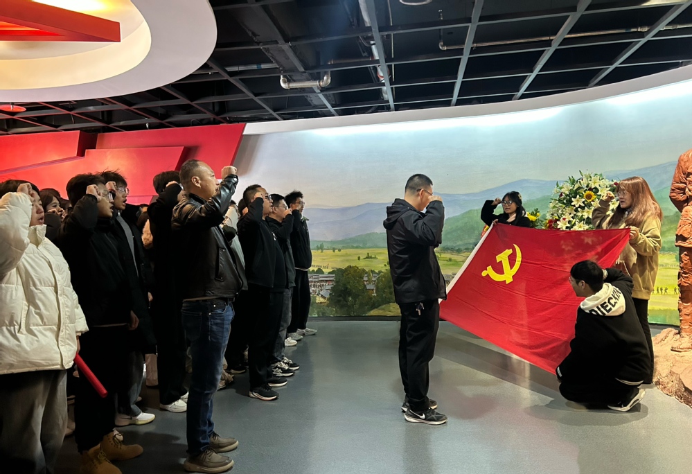 次日上午,队伍抵达哈达铺长征纪念馆,师生们参观了毛泽东、张闻天等领导人故居,重温了党中央在此确定长征落脚点的历史性决策。在纪念馆里,党委副书记李剑带领所有全体党员庄严宣誓,铿锵有力的誓言回荡在红色热土上空。随后在腊子口战役纪念馆,通过实地察看地形、参观战斗遗址,全面了解腊子口战役中革命先辈攻坚克难、舍生取义的峥嵘岁月,深刻体会到“不怕牺牲、顽强拼搏”的革命道德内涵。
