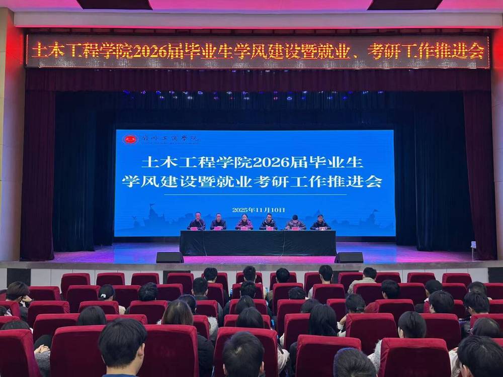 为进一步加强学院学风建设,全力推进2026届毕业生就业、考研工作,近日,土木工程学院在学术报告厅召开2026届毕业生学风建设暨就业、考研工作推进会。学院领导班子、毕业班辅导员及全体2026届毕业生参加会议。会议由党委副书记李剑主持。