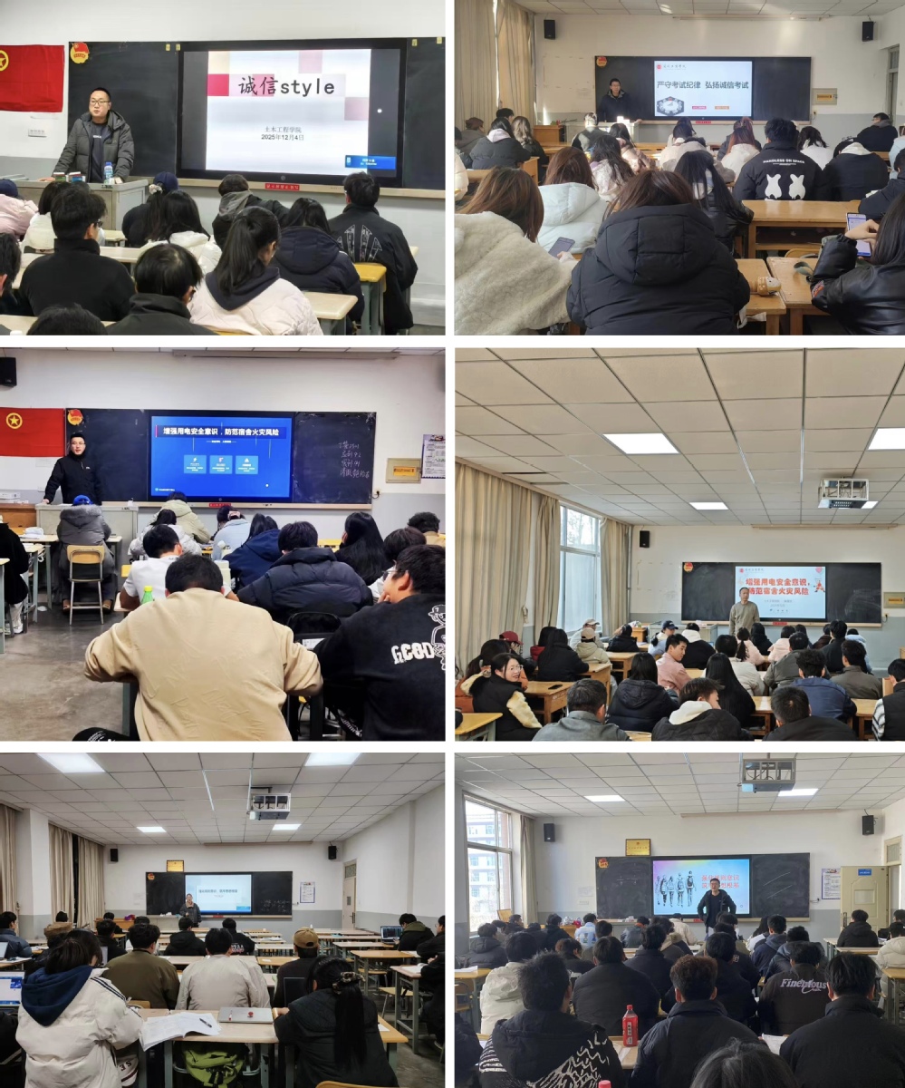 为深入落实立德树人根本任务,强化学生诚信意识、规则意识与安全意识,土木工程学院于11月30日至12月5日在全院范围内开展主题班会集中教育活动,实现所有班级、全体学生全覆盖。