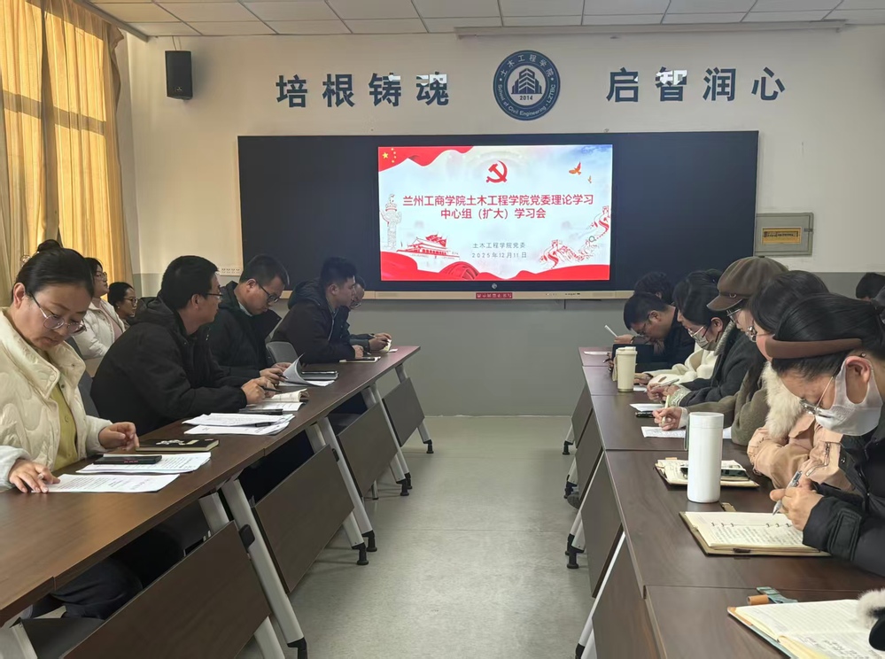 为深入学习贯彻习近平新时代中国特色社会主义思想,全面强化党员教师的政治素养与责任担当,切实提升网络生态治理能力,营造清朗育人环境。12月11日,土木工程学院在善问楼106会议室组织开展党委理论学习中心组(扩大)学习会。学院相关领导、党委委员及全体教工党员参加了此次会议,会议由学院党委副书记李剑主持。
