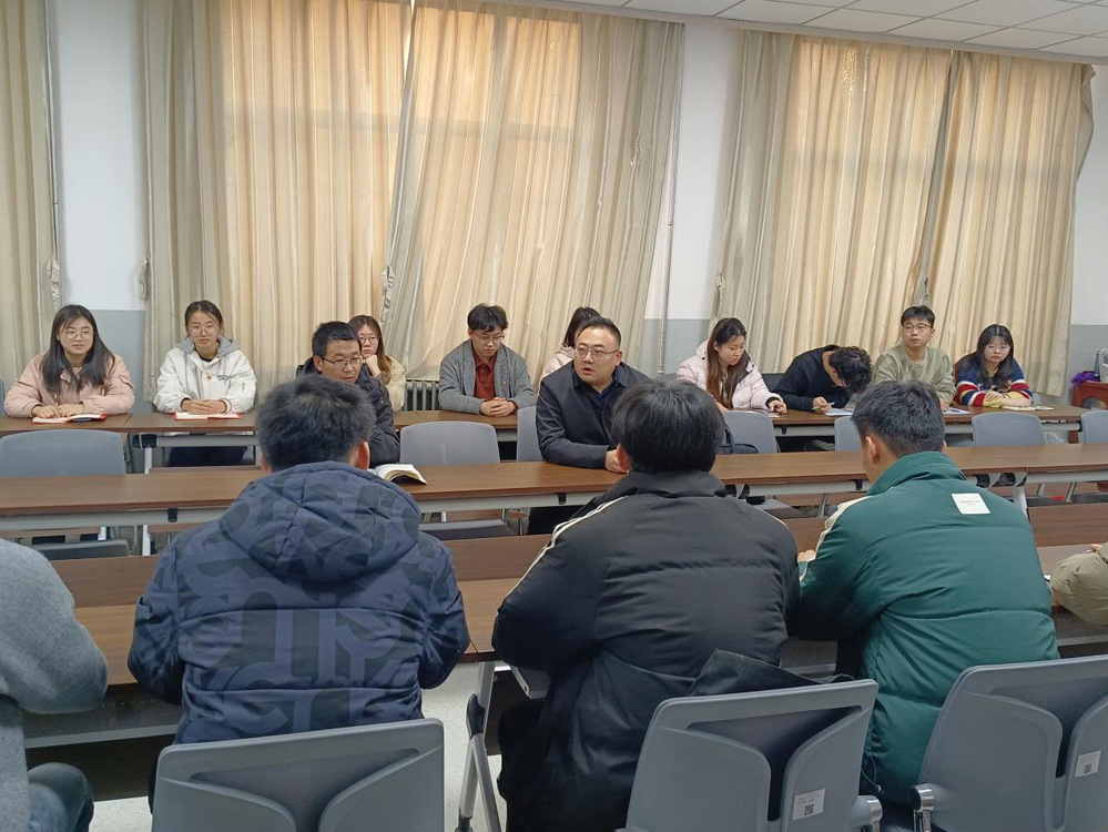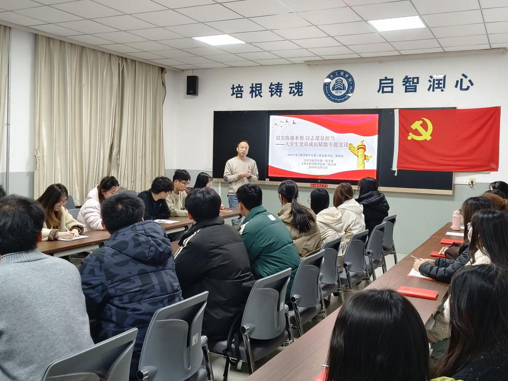 专题党课环节,文法学院学生第一党支部书记侯媛同志与土木工程学院学生第三党支部书记张国龙同志分别讲授党课并形成互补。侯媛同志围绕“学习贯彻党的二十届四中全会精神”,阐释其时代内涵与政策导向,结合高校党建实际给出实践路径,强调信息技术赋能党建的重要性,助力全会精神转化为学科实践。张国龙同志结合“以实践强本领 以志愿显担当”主题,融入工科专业特色与前沿视角,说明实践与志愿活动是锤炼本领、践行初心的重要载体,为理论与业务深度融合提供清晰思路。两堂党课立足实际、各有侧重,共同推动理论学习与实践应用深度结合。
