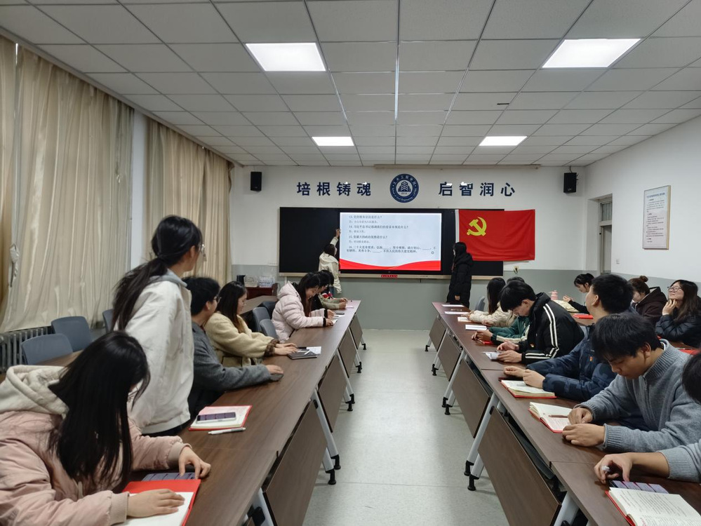 党建知识竞赛将活动推向高潮。竞赛以活动主题为核心,涵盖党章党规、党的基本理论、习近平新时代中国特色社会主义思想及二十届四中全会精神等内容,采用“抽题抢答” 形式。两个支部党员同台竞技、踊跃答题,现场气氛热烈。此次竞赛以赛促学、以赛促建,既检验巩固了学习成果,又增进强化了跨学院党员间的沟通,提高了凝聚力与团队协作意识。