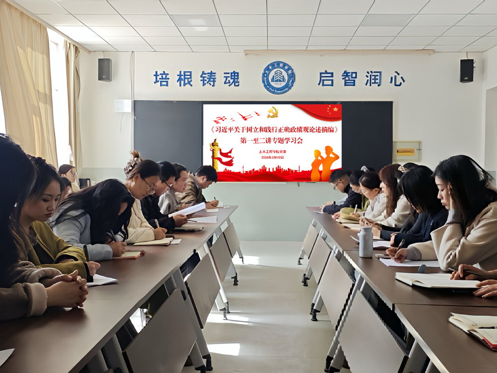 会议结合土木工程学院育人实际与年度重点工作,提出三点贯彻落实要求:一是筑牢思想根基,深化理论武装。持续深入学习《习近平关于树立和践行正确政绩观论述摘编》,坚持读原著、学原文、悟原理,推动正确政绩观入脑入心,以理论清醒保证政治坚定。二是站稳人民立场,践行育人宗旨。坚守立德树人根本任务,把培养高素质土木类人才作为核心政绩,聚焦师生急难愁盼办实事,在就业帮扶、学风建设、实验室安全、师资发展、后勤保障等方面出实招、求实效,不断提升师生获得感与满意度。三是强化党性锤炼,砥砺担当精神。以坚强党性引领干事创业导向,坚持功成不必在我、功成必定有我,既做显功、也做潜功,多做打基础、利长远、补短板、提质效的工作,以钉钉子精神推动学院内涵式高质量发展。