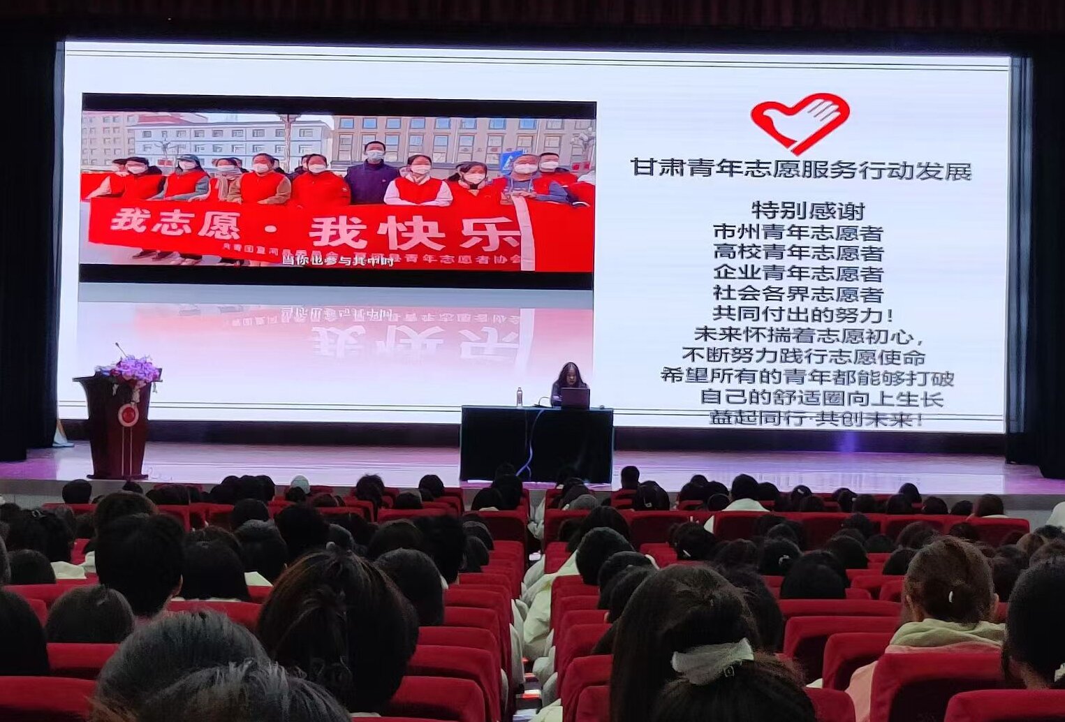 为进一步健全我校志愿服务体系,提高志愿者的专业素养和活动质量,提升志愿者管理能力,我校于11月20日晚上在学术报告厅成功召开了青年志愿者培训会。此次讲座由甘肃省青年志愿者协会秘书处副秘书长高振叶老师讲授,主题为“青年志愿服务事业的发展历程及现状”。我校共有800名志愿者热情参与。