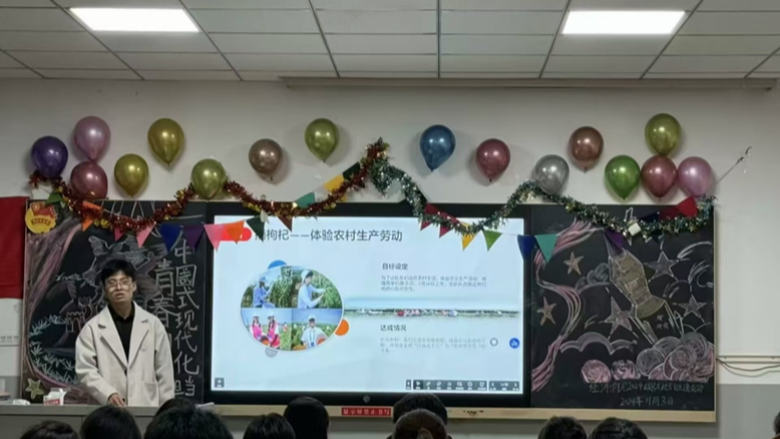 同学们全神贯注,眼神中闪烁着思考与领悟的光芒。在讨论环节,思想的火花激烈碰撞。一位同学激昂地说道:“我们正处在前所未有的伟大时代,中国式现代化建设需要我们这一代青年挺身而出。就像在乡村振兴的战场上,有无数青年返乡创业,发展特色农业,用知识和汗水改变乡村面貌,我们也应该寻找自己的战场。”其他同学纷纷点头,积极响应。本次主题团会有助于学子们树立起正确的价值观和远大理想,让他们将个人的成长轨迹与国家的发展脉络紧密交织在一起。