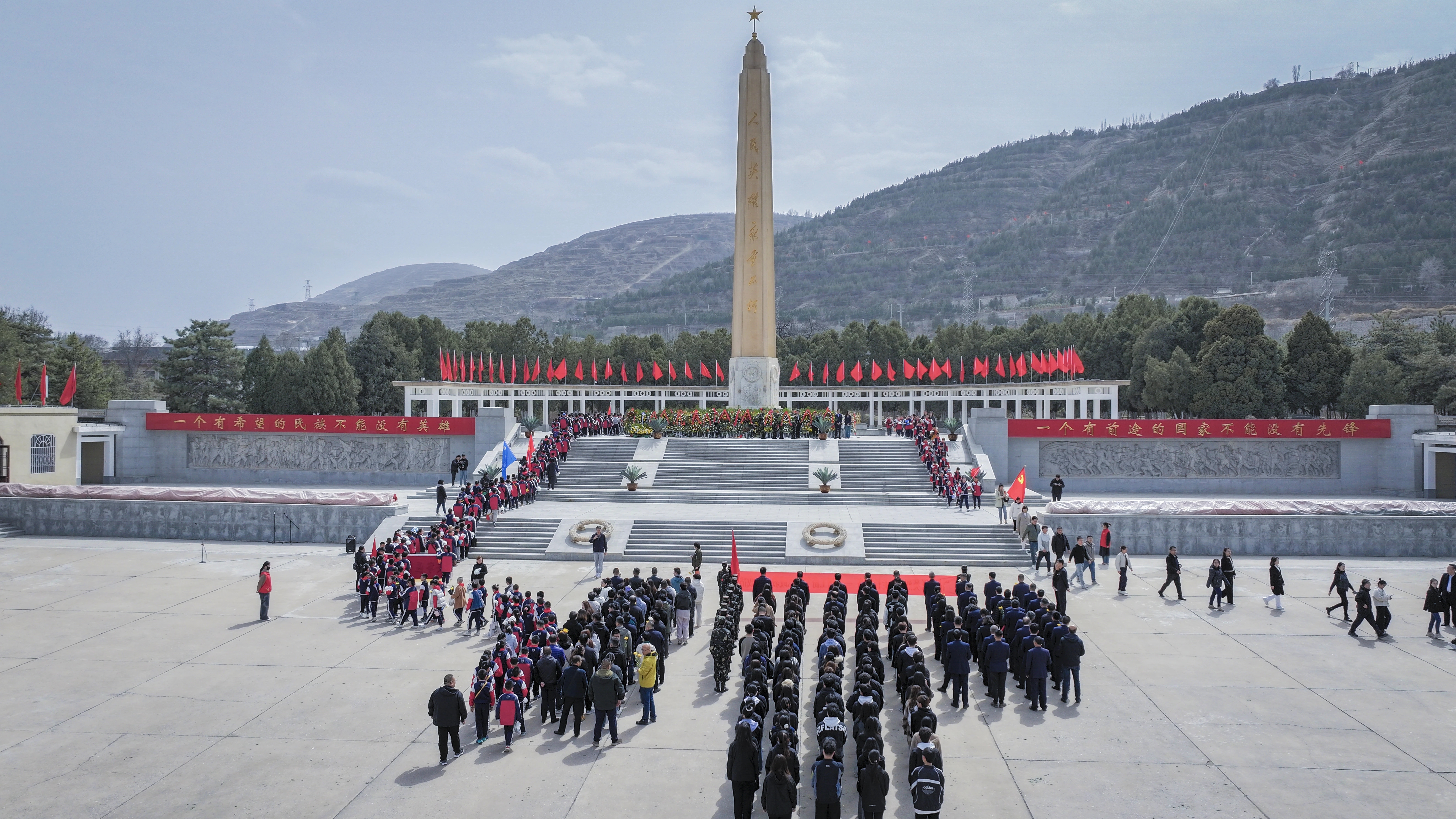 苍松翠柏掩映下的烈士陵园庄严肃穆。