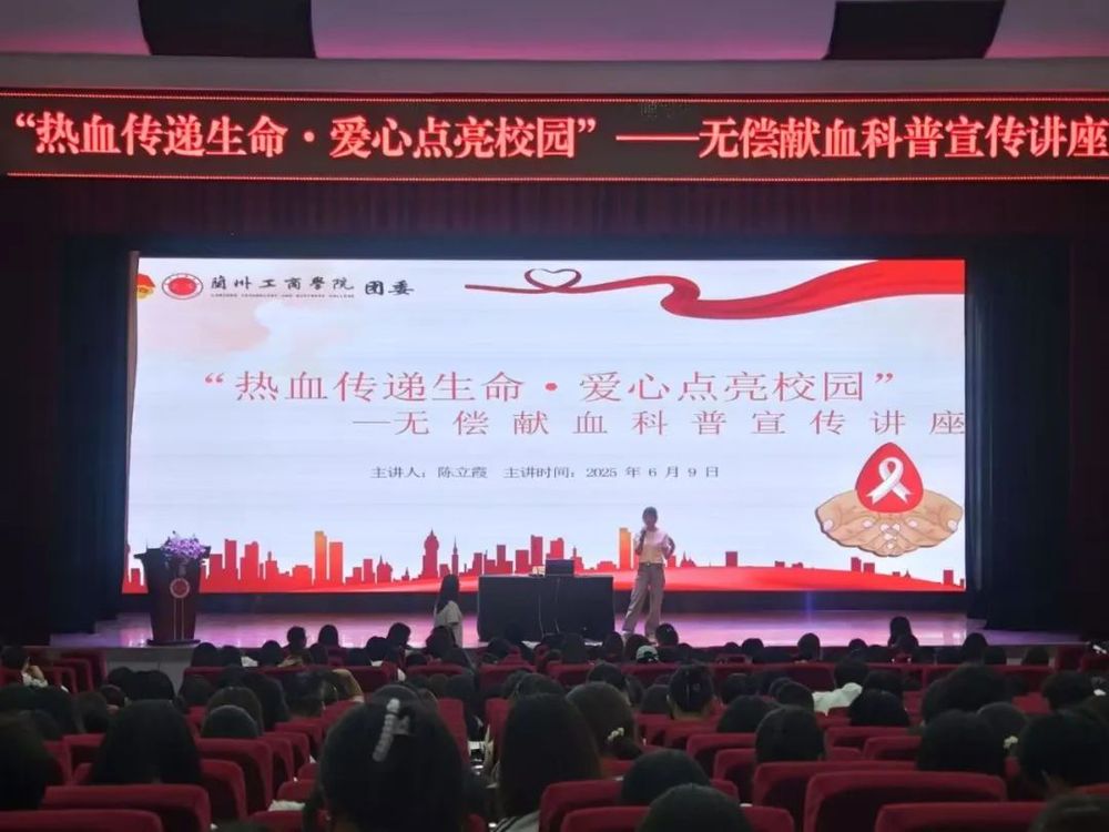 为普及无偿献血知识,增强学生的社会责任感,校团委特邀甘肃省红十字血液中心献血宣传员陈立霞老师于2025年6月9日在学术报告厅顺利举行以“热血传递生命 · 爱心点亮校园” 为主题的无偿献血科普宣传讲座。本次讲座吸引了820余名志同学参与,现场气氛热烈,收获良好反响。