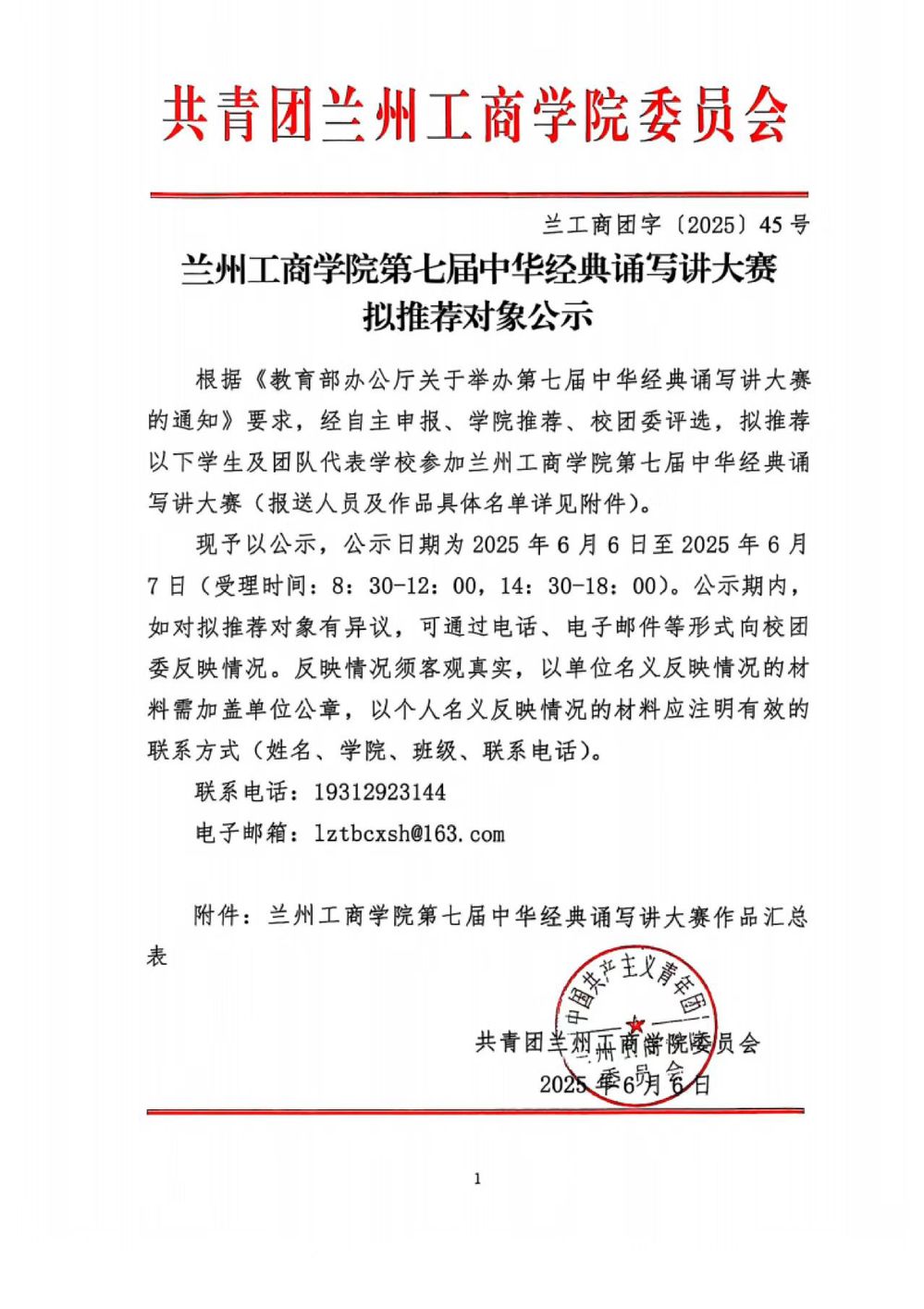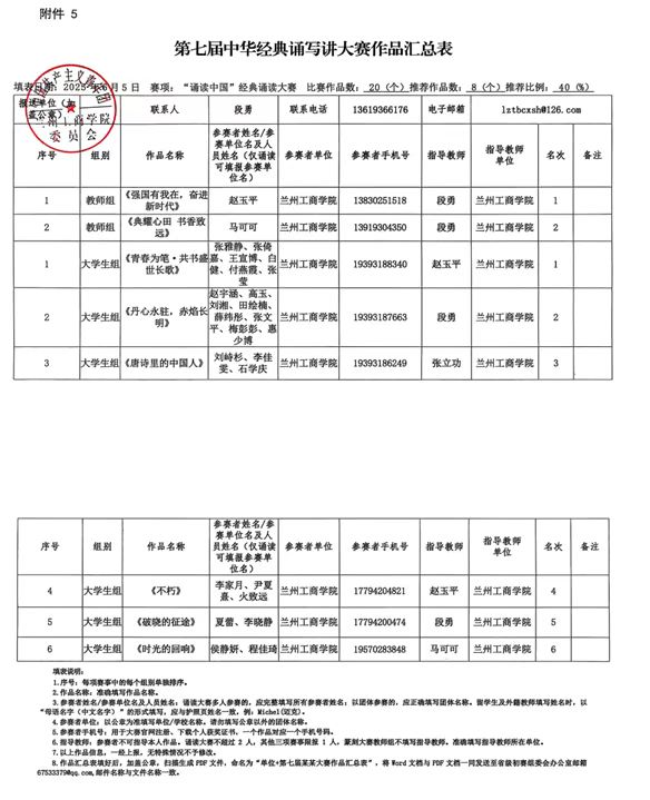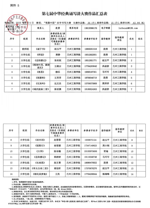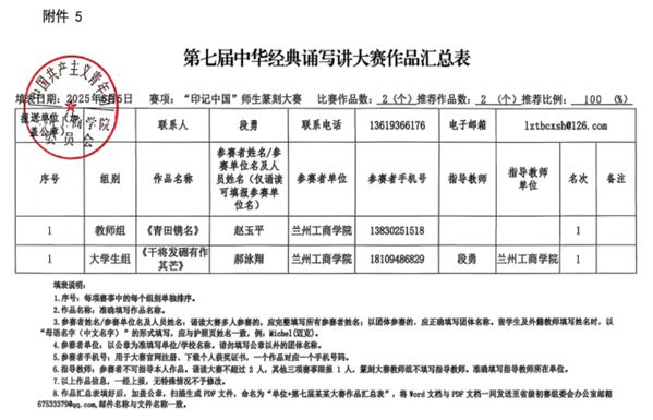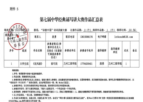 兰州工商学院第七届中华经典诵写讲大赛 拟推荐对象公示