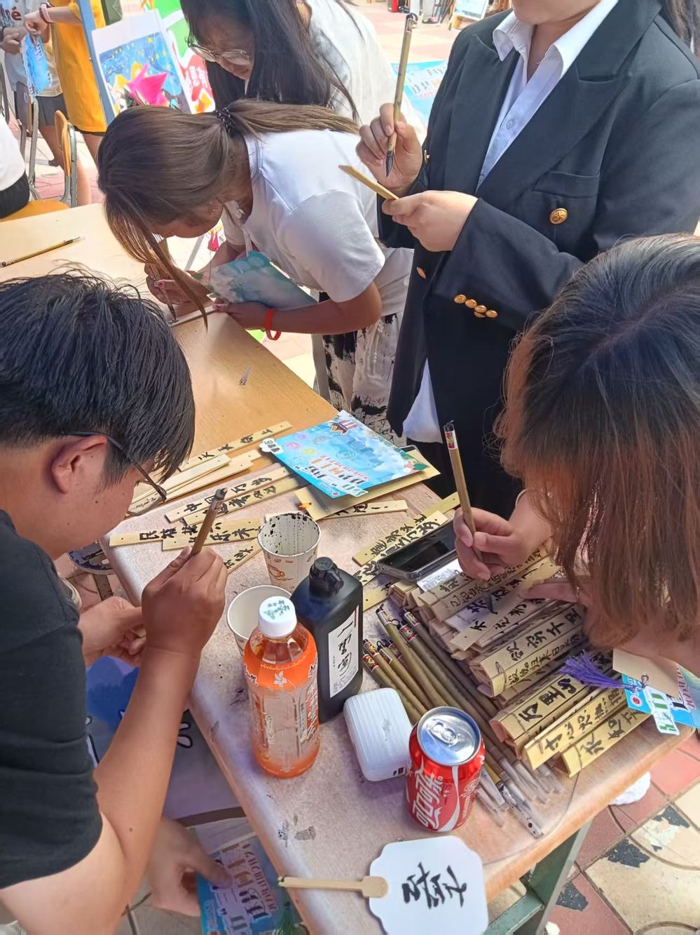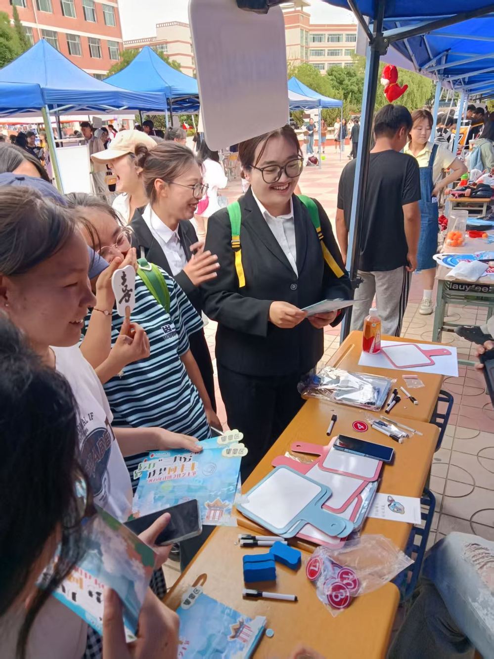 在“文明校园共建”区域,传统文化与现代创意交相辉映。礼韵社的诗词接龙与主持社的脱口秀表演相得益彰,夏卓雅姆果卓艺术团的民族特色展示与动漫社的趣味游戏相映成趣。绿色资源发展协会的创意手作和涂鸦活动倡导绿色理念,各类手工社团的互动体验则让同学们在动手中感受创造的快乐。