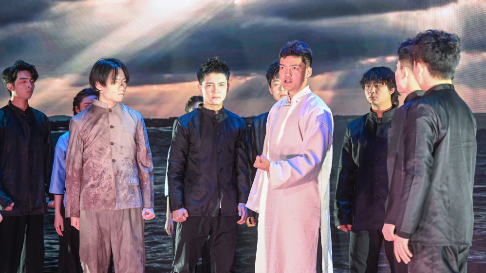 当晚,作为文化月重要内容之一的思政舞台剧在学术报告厅温情上演。部分校领导与800余名师生代表和7000余名青年学生线上线下同上一堂沉浸式爱国主义教育思政课。